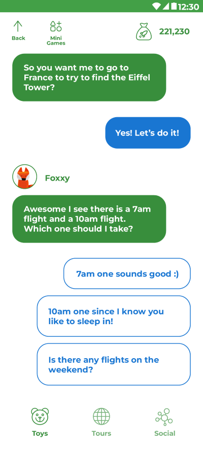 Send your buddy on exciting tours around the world. Discuss locations, collect photos and stamps in your passport, and find unique artifacts!