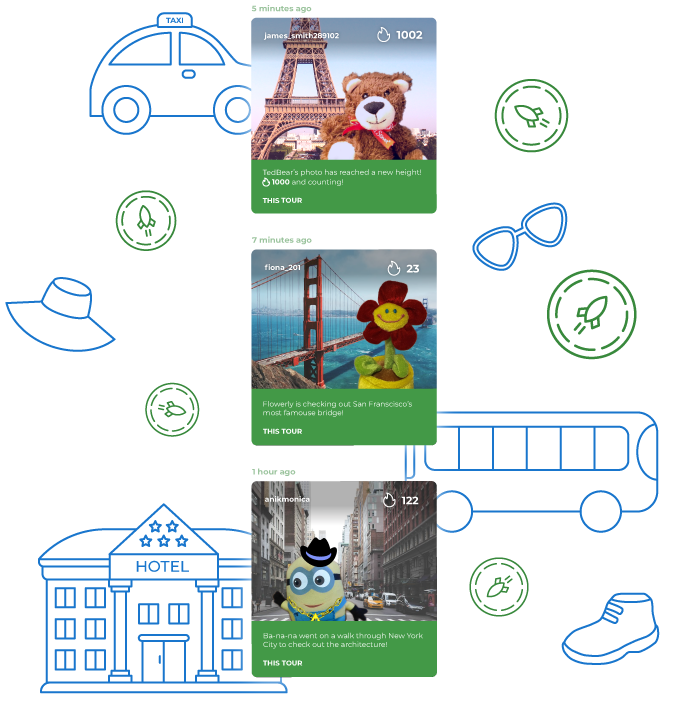 Sending your toys on a tour around the world. Could be either in real life or virtually.